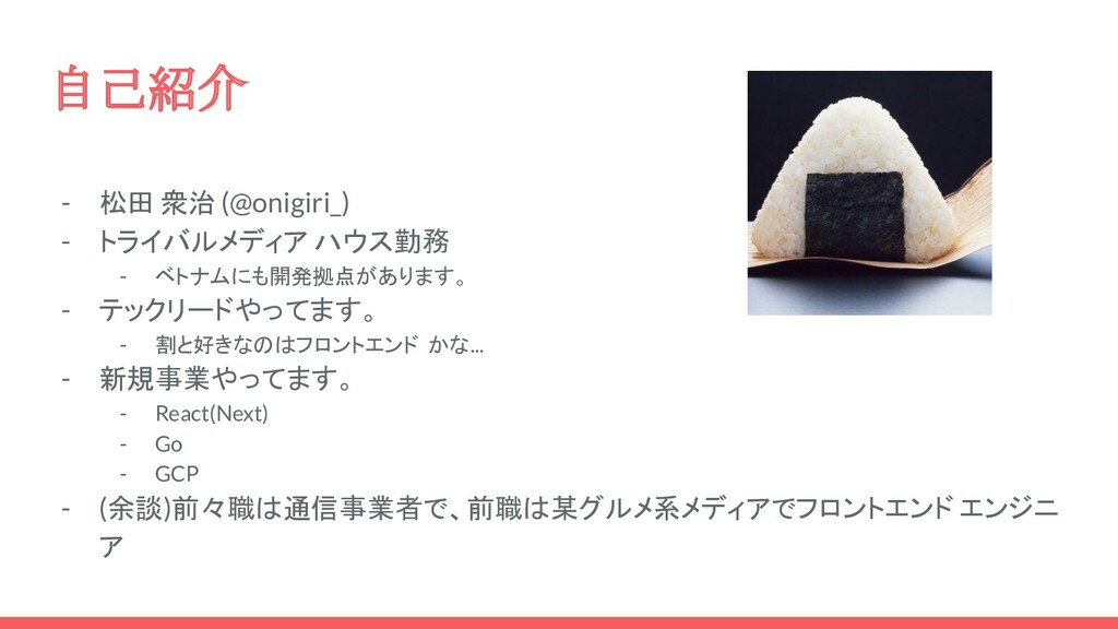 自己紹介 - 松田 衆治 (@onigiri_) - トライバルメディア ハウス勤務 - ベトナムにも開発拠点があります。
