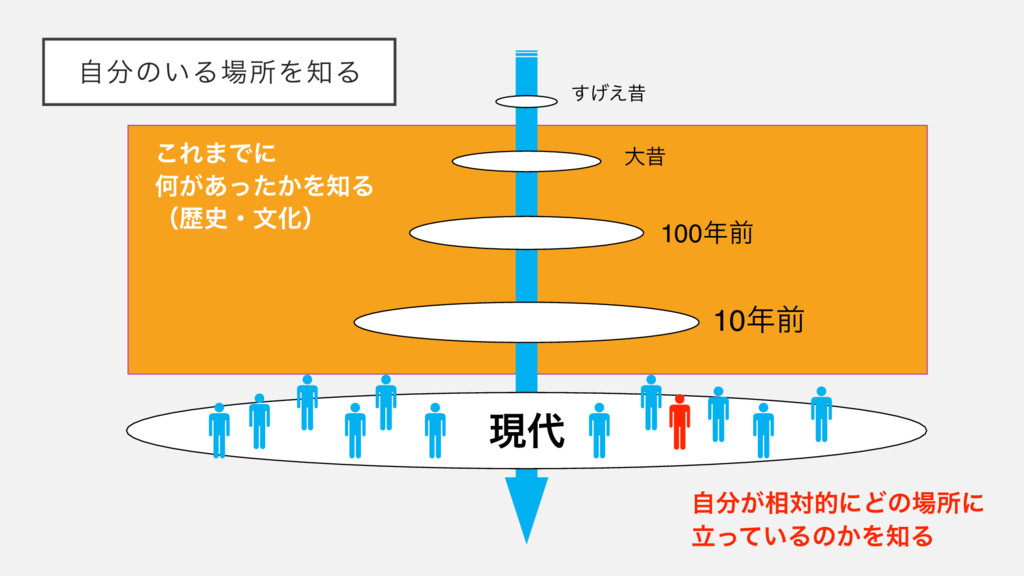 ͜Ε·Ͱʹ Կ͕͔͋ͬͨΛΔ ʢྺ࢙ɾจԽʣ ࣗͷ͍ΔॴΛΔ ݱ ͛͑͢ੲ େੲ 100લ 10લ ͕ࣗ૬ରతʹͲͷॴʹ