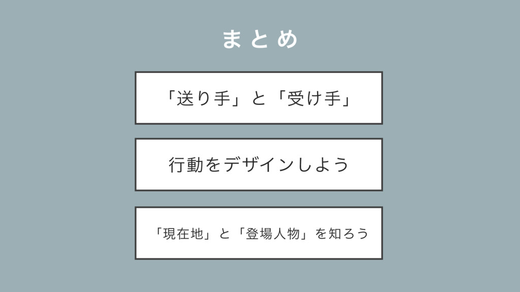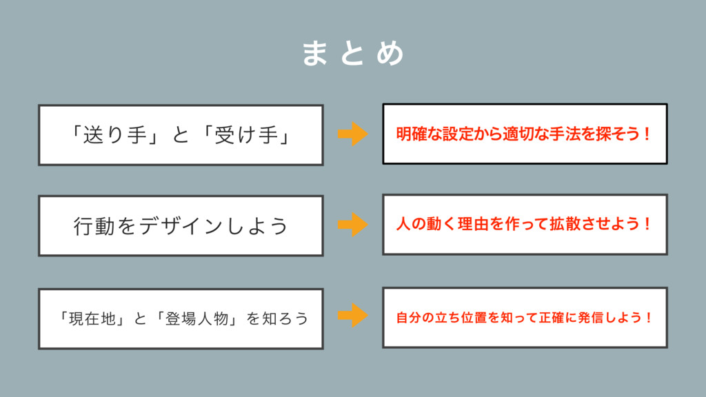 ߦಈΛσβΠϯ͠Α͏ ʮݱࡏʯͱʮొਓʯΛΖ͏ · ͱ Ί ʮૹΓखʯͱʮड͚खʯ ࣗͷཱͪҐஔΛͬͯਖ਼֬ʹൃ৴͠Α͏ʂ ໌֬ͳઃఆ͔Βదͳख๏Λ୳ͦ͏ʂ ਓͷಈ͘ཧ༝Λ࡞֦ͬͯࢄͤ͞Α͏ʂ