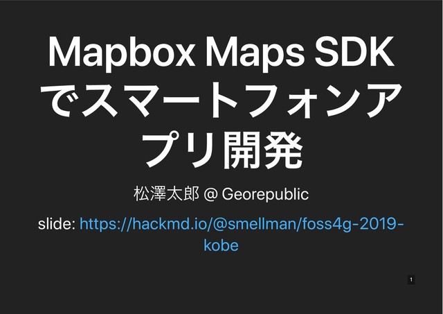দᖒଠ @ Georepublic slide: https://hackmd.io/@smellman/foss4g-2019- kobe 1