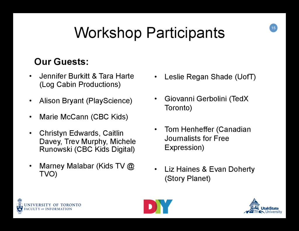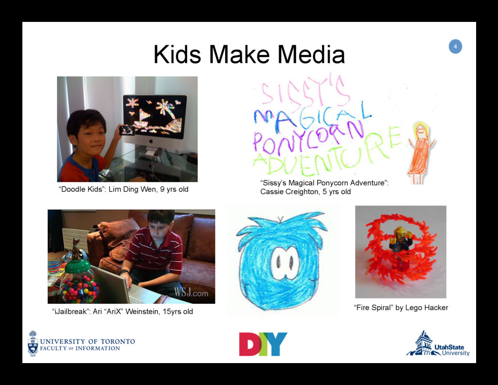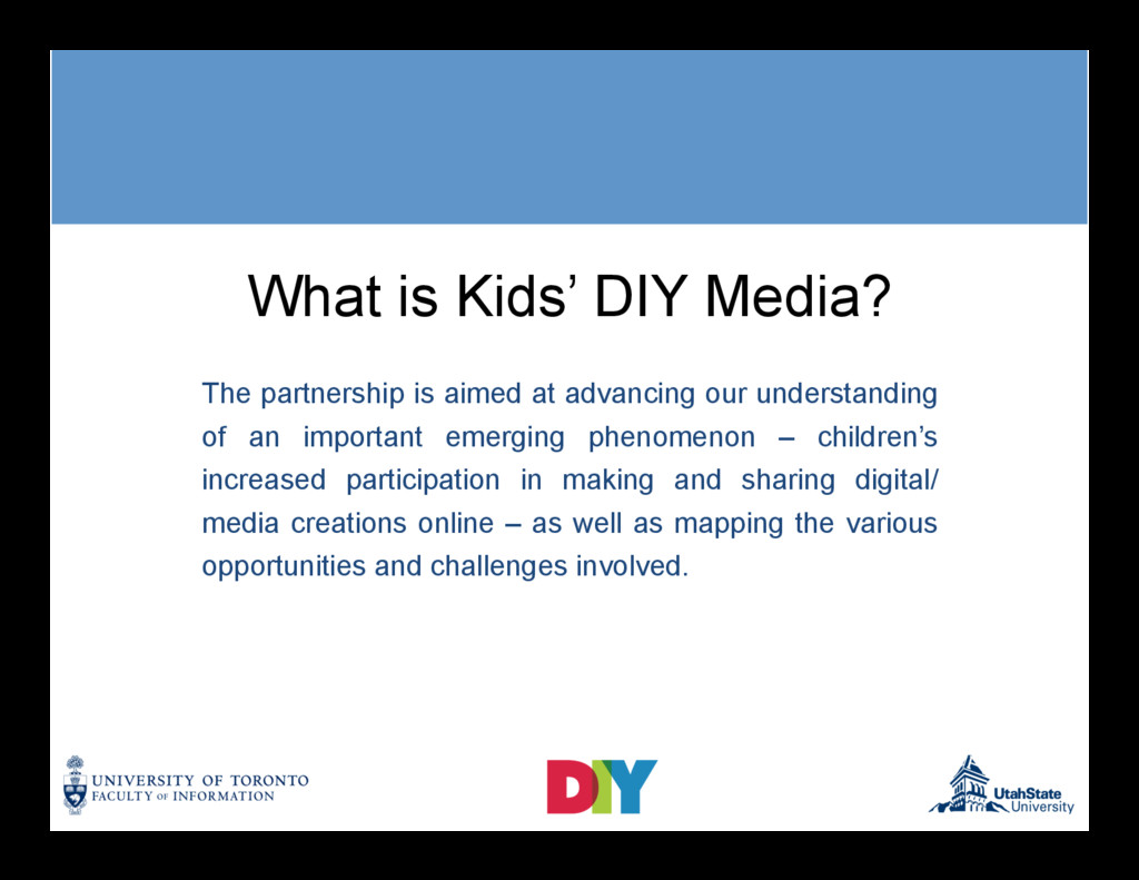 Daylong workshop aimed reviewing the Kids DIY Media Partnership’s ongoing research into children's digital do-ityourself (DIY) media production, and discussing the social, ethical and