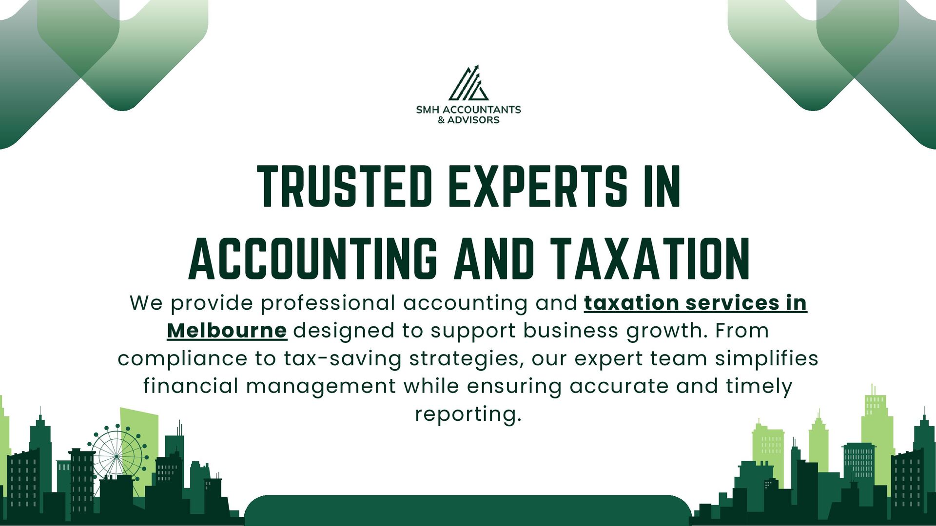 to support business growth. From compliance to tax-saving strategies, our expert team simplifies financial management while ensuring accurate and timely reporting. TRUSTED EXPERTS IN ACCOUNTING AND TAXATION