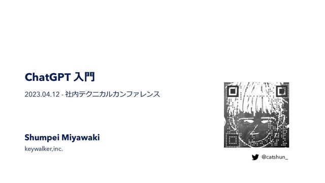 ChatGPT ⼊⾨ 2023.04.12 - 社内テクニカルカンファレンス Shumpei Miyawaki keywalker,inc. @catshun_