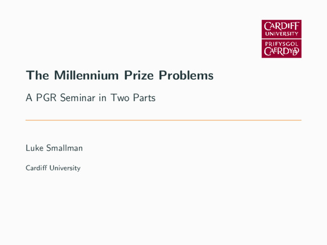 set out by the Clay Mathematics Institute • The Millenium Prize Problems are now six unsolved problems and one solved problem. • They have a certain level of infamy due to the Clay Mathematics Institute’s promise of $1 million for a correct proof of any of the problems 2