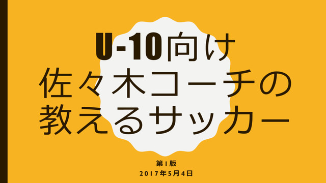 U-10向け 佐々⽊木コーチの 教えるサッカー 第 1 版 2 0 1 7