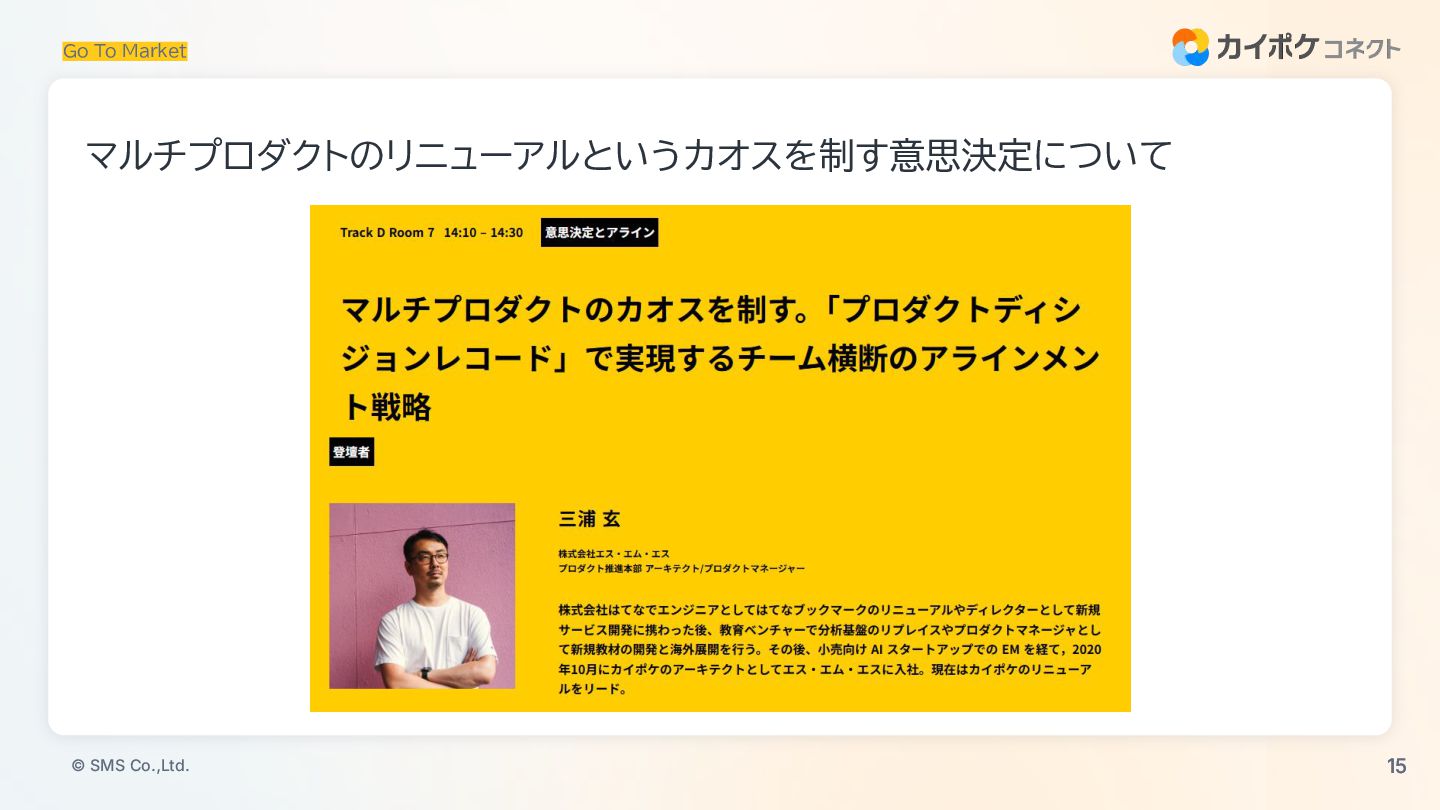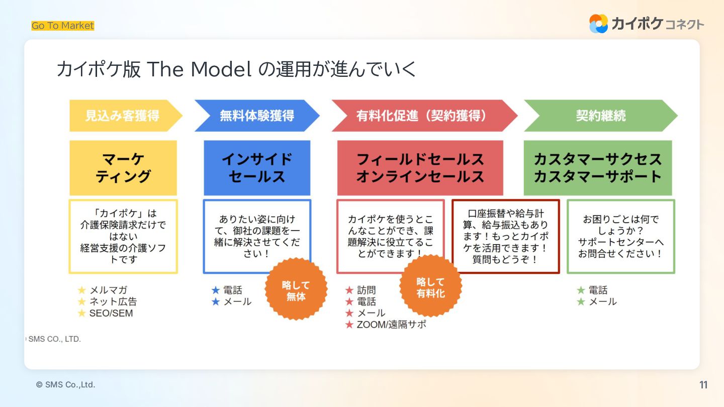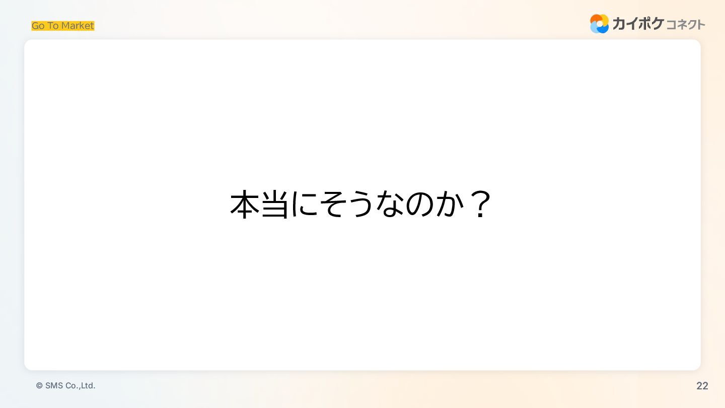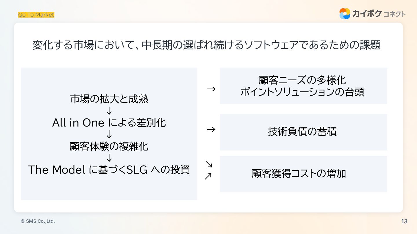 クラウド vs オンプレ クラウドソフトの台頭 成長 戦略 超低価格の ディスラプト戦略 All in Oneによる 差別化戦略 MLG Marketing Led Growth SLG Sales Led Growth 詳しくは、「収益化まで9年!カイポケ18年の歴史を事業/プロダクト開発観点から解説」 請求ソフト 経営支援 プロダクト Go To Market 組織規模 売上 10~100億円 100~300人 ~10億円 ~50人