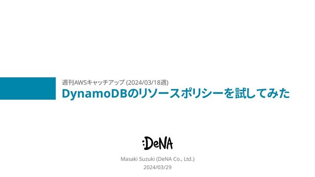 2024/03/29(金) 21:00~22:00に実施された「#24 JAWS-UG主催 週刊AWSキャッチアップ(2024/03/18週)」における私のLT「DynamoDBのリソースポリシーを試してみた」の資料になります。 #jawsug