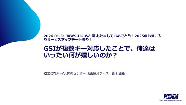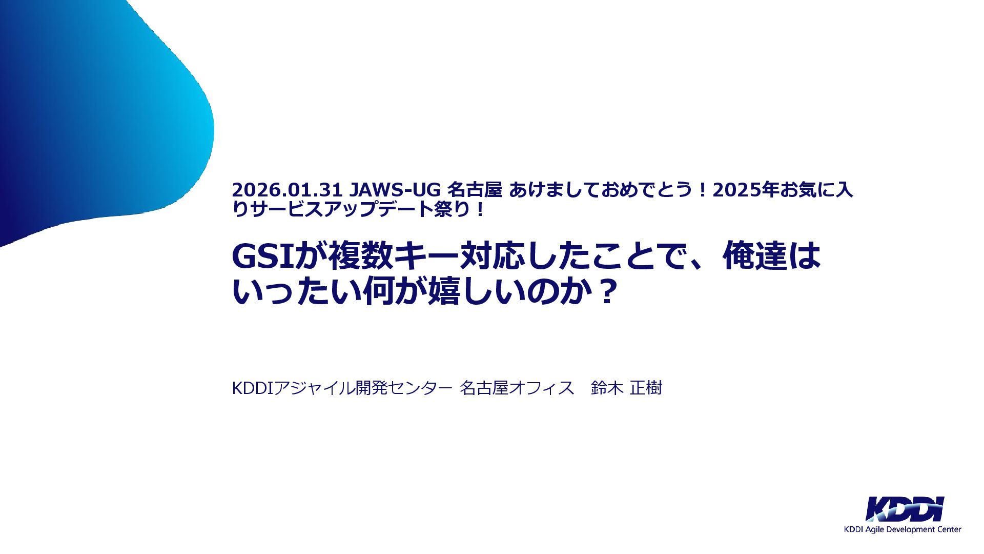 2026/01/31(土)に開催された「JAWS-UG名古屋 あけましておめでとう!2025年お気に入りサービスアップデート祭り!」における私のLT「GSIが複数キー対応したことで、俺達はいったい何が嬉しいのか?」の発表資料になります。 #jawsug_nagoya