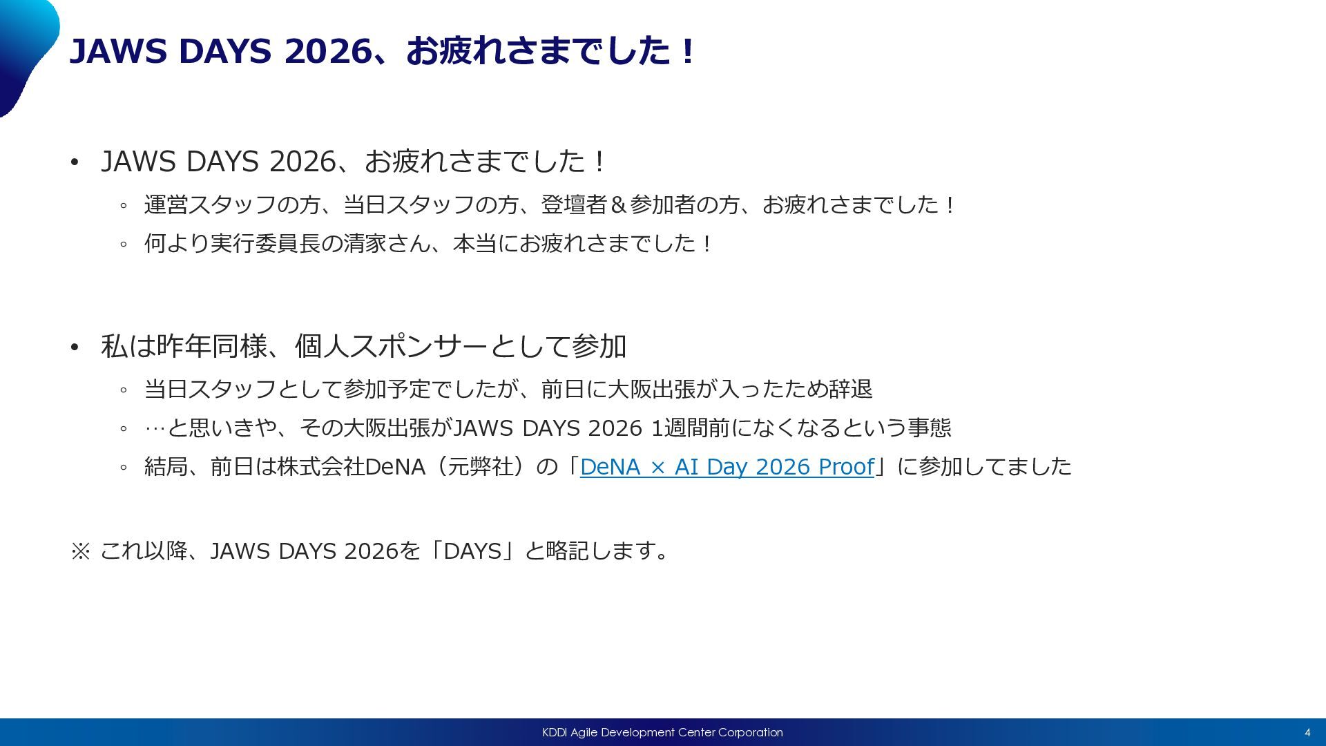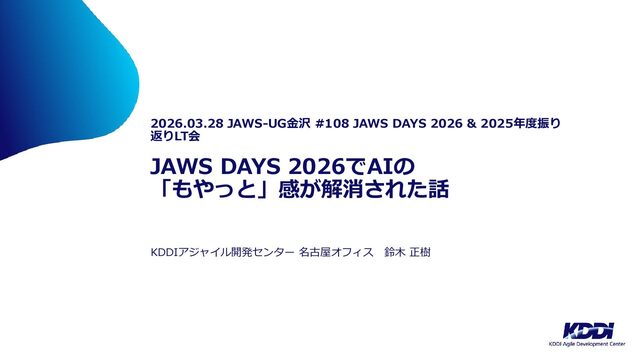 2026/03/28(土)開催の「JAWS-UG金沢 #108 JAWS DAYS 2026 & 2025年度振り返りLT会」における私のLT「JAWS DAYS 2026でAIの「もやっと」感が解消された話」の発表資料です
