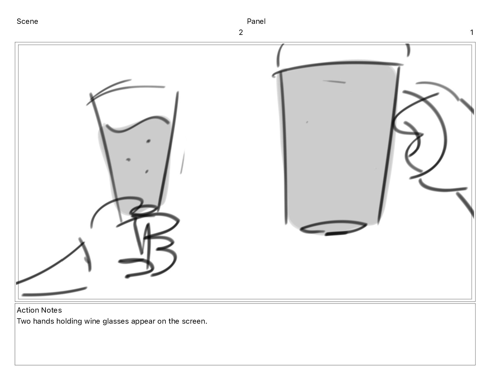 Scene 2 Panel 1 Action Notes Two hands holding wine