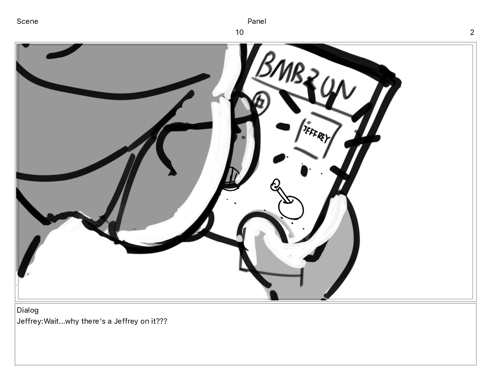 Scene 10 Panel 2 Dialog Jeffrey:Wait...why there's a Jeffrey on