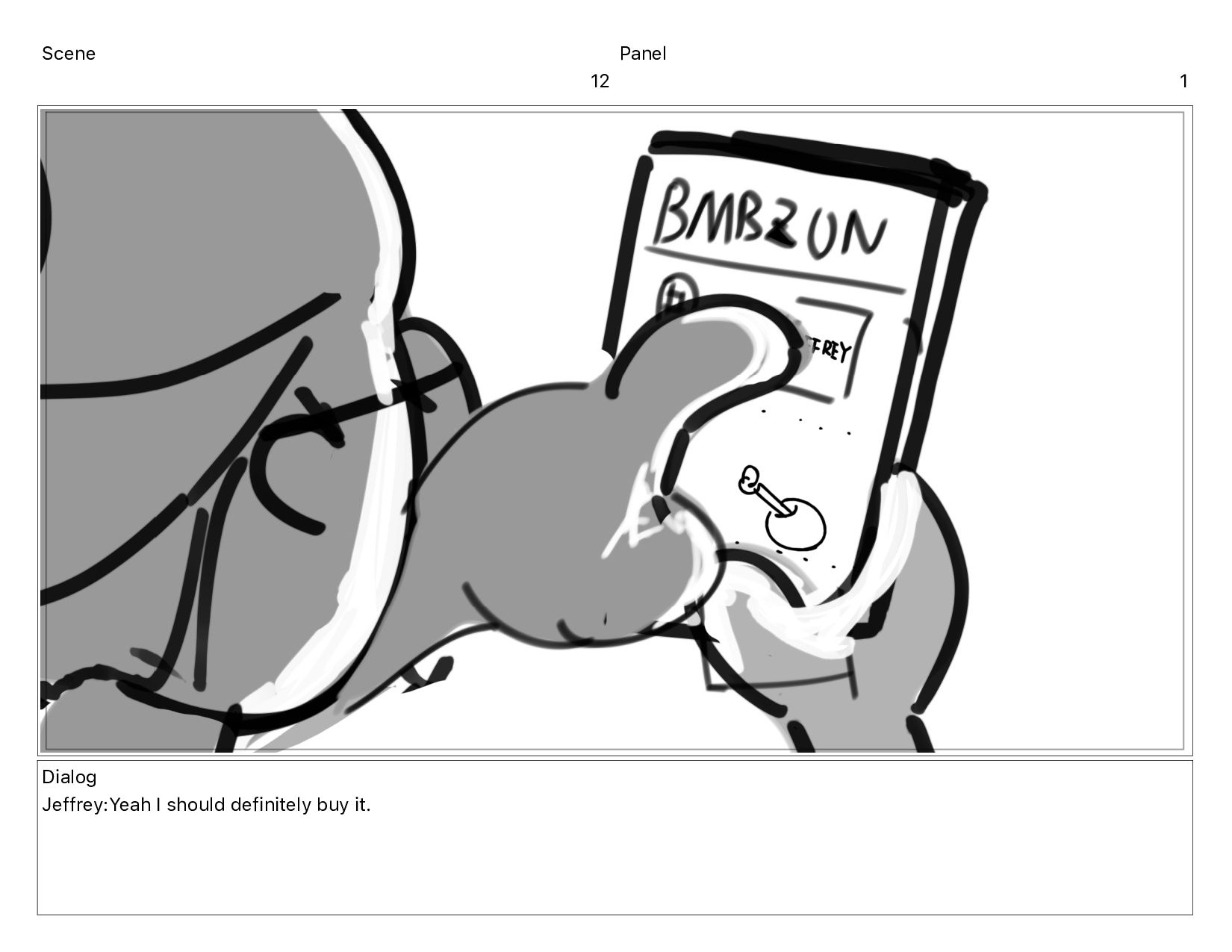 Scene 12 Panel 1 Dialog Jeffrey:Yeah I should definitely buy