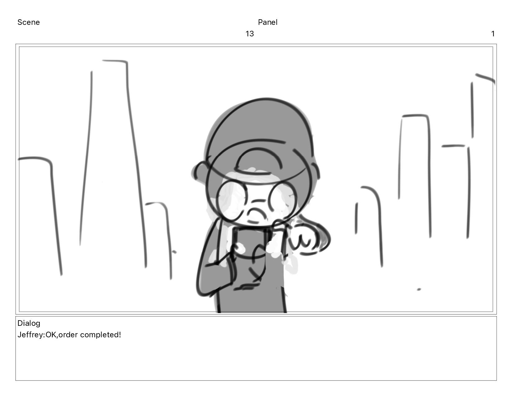 Scene 13 Panel 1 Dialog Jeffrey:OK,order completed!