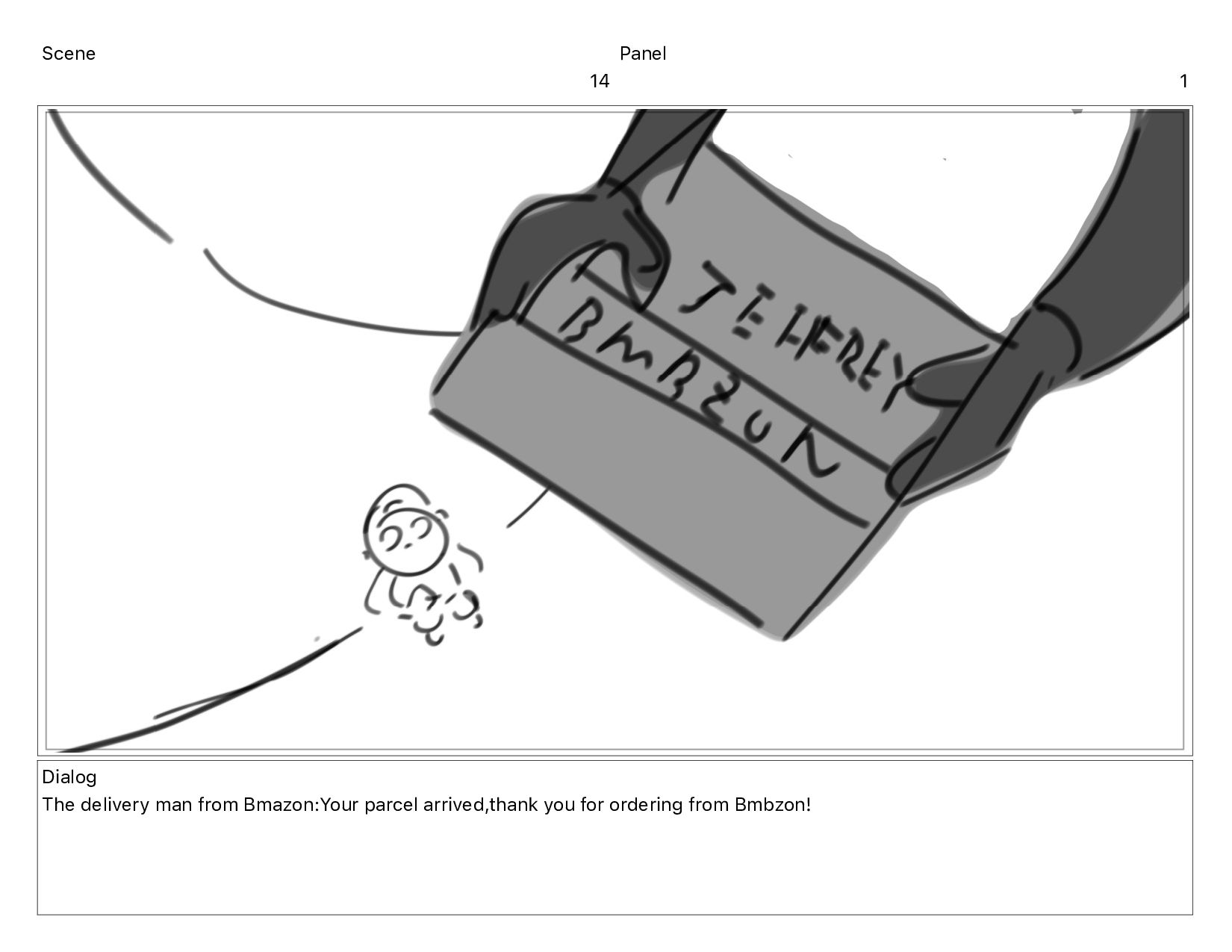 Scene 14 Panel 1 Dialog The delivery man from Bmazon:Your