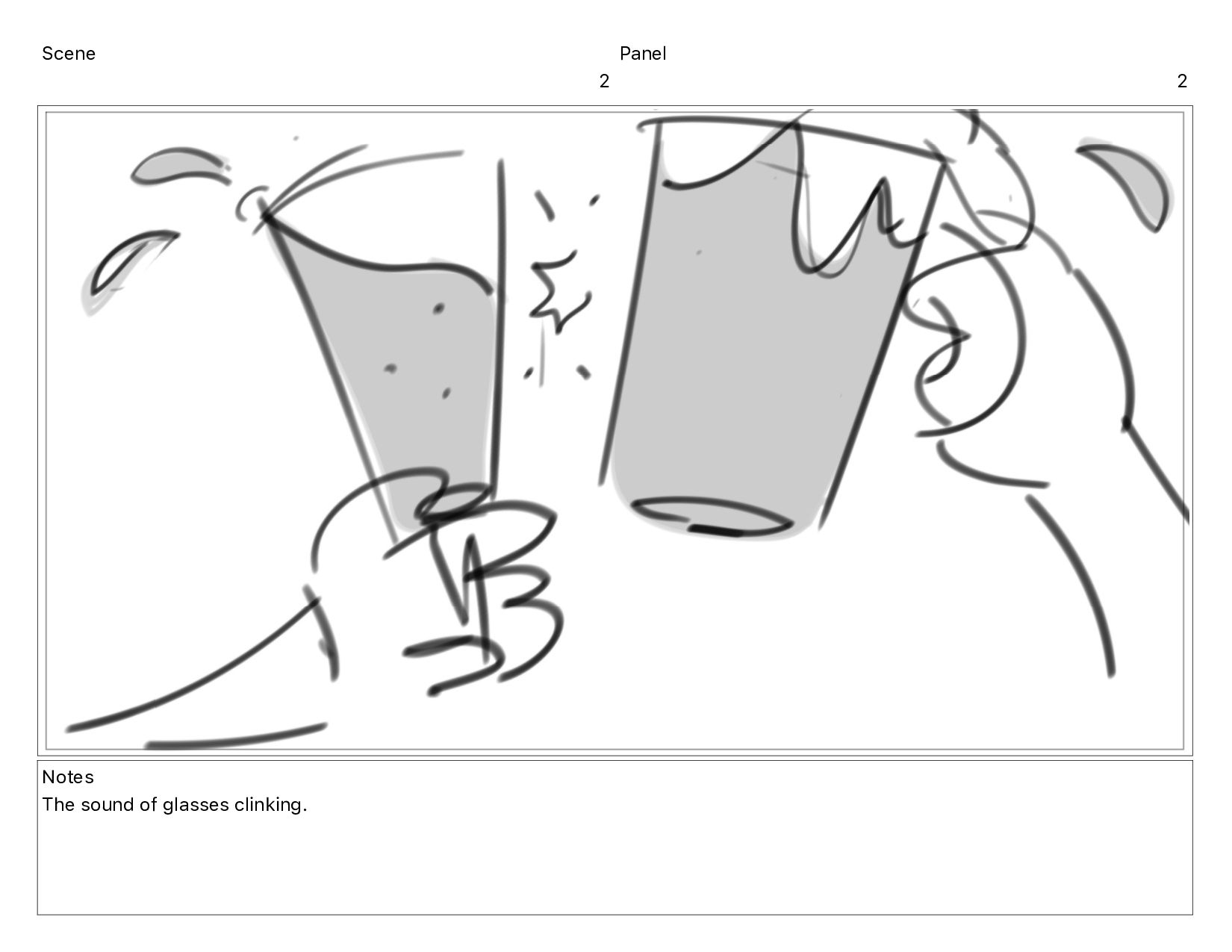 Scene 2 Panel 2 Notes The sound of glasses clinking.
