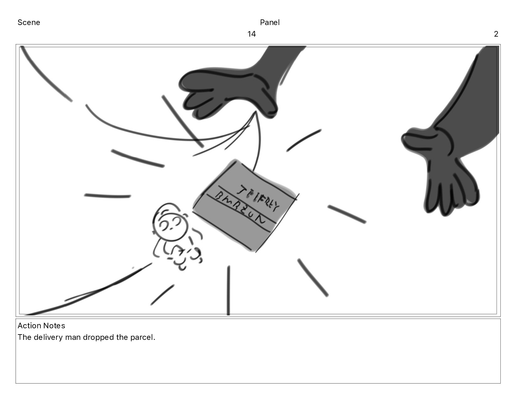 Scene 14 Panel 2 Action Notes The delivery man dropped