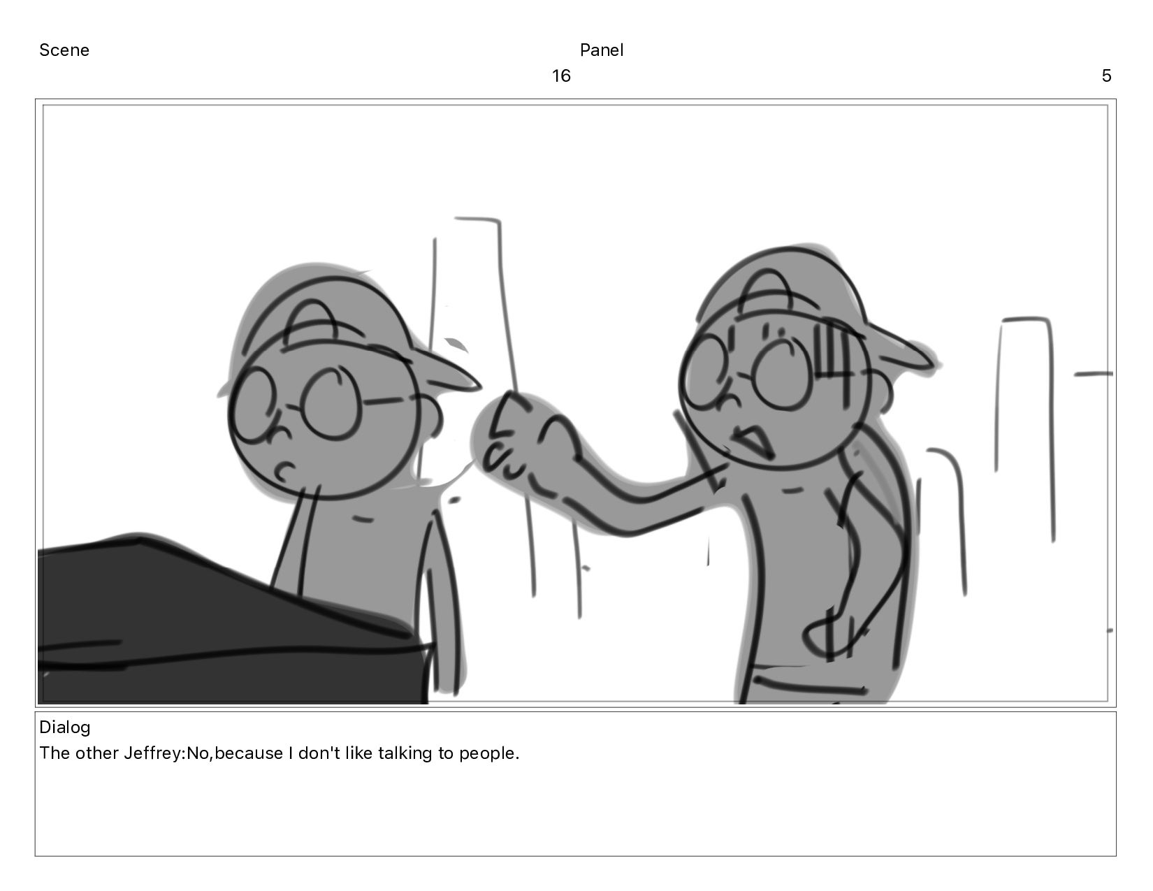 Scene 16 Panel 5 Dialog The other Jeffrey:No,because I don't