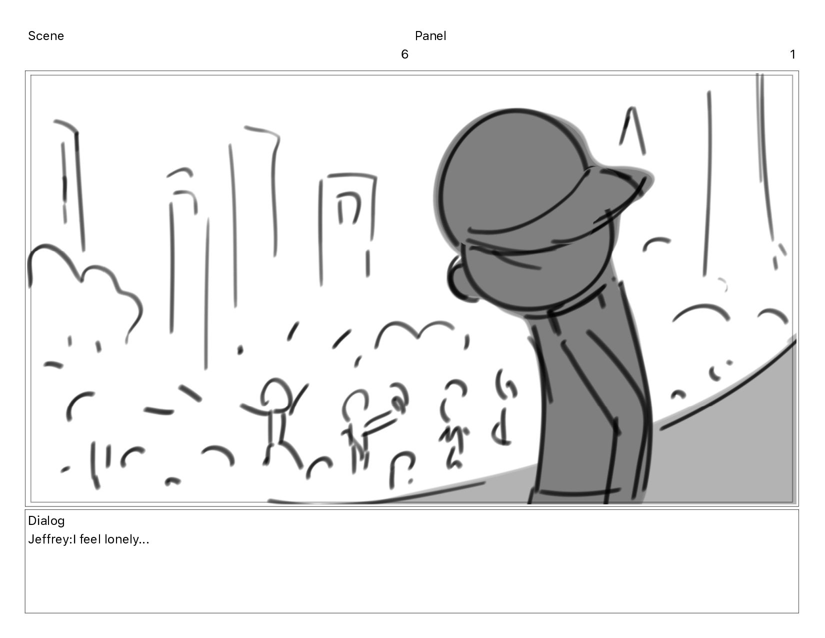 Scene 6 Panel 1 Dialog Jeffrey:I feel lonely...