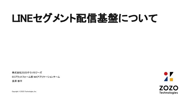 LINEセグメント配信基盤について 株式会社ZOZOテクノロジーズ ECプラットフォーム部 MAアプリケーションチーム 長澤 修平 Copyright © ZOZO Technologies,