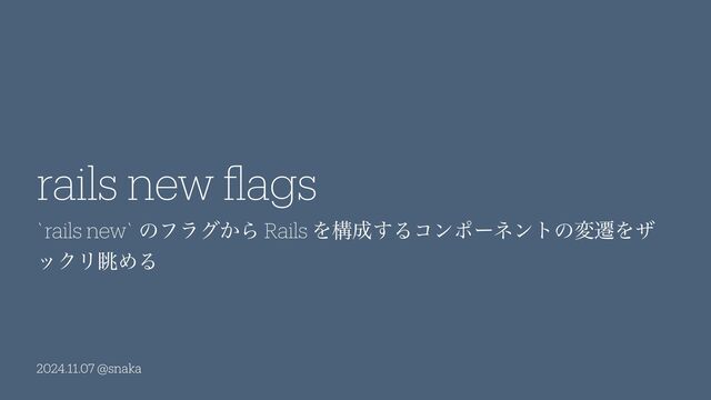 2024.11.07 @snaka `rails new` ͷϑϥά͔Β Rails Λߏ͢ΔίϯϙʔωϯτͷมભΛβ οΫϦோΊΔ rails new