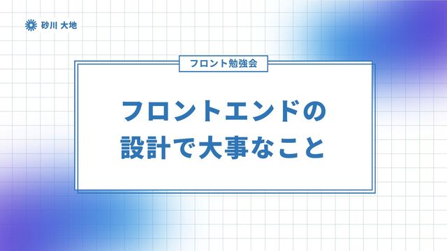 砂川 大地 フロントエンドの 設計で大事なこと フロント勉強会
