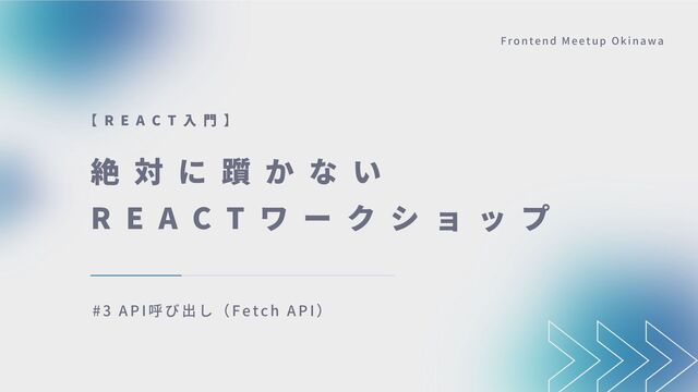 C T ワ ー ク シ ョ ッ プ 【 R E A C T 入 門 】 #3 API 呼び出し(F etch A P I) F r o n t e n d M e e t u p O k i n a w a