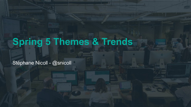 Preparing for the challenges of 2017 and beyond, Spring Framework 5 focuses on several key themes:. In particular reactive web applications, comprehensive support for JDK 9, and a general focus on lambda-oriented programmatic setup This keynote introduces Spring Framework 5.0 towards the end of its milestone phase and presents selected feature highlights.