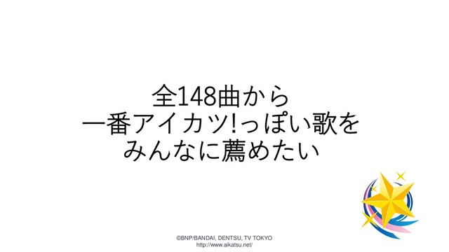 社内LTで使用した資料ですが Skip-Gramモデルによるアイカツ148曲(バージョン違い除く)の分析です。