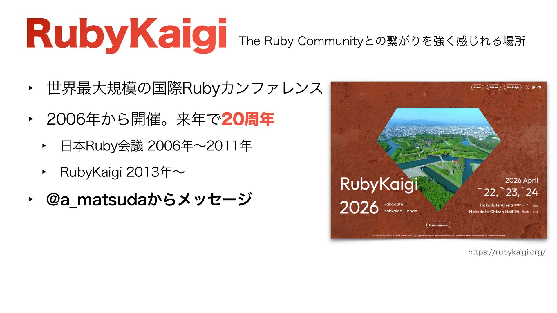 3VCZ,BJHJ ‣ ੈք࠷େنͷࠃࡍ3VCZΧϯϑΝϨϯε ‣ ͔Β։࠵ɻདྷͰप ‣ ຊ3VCZձٞʙ ‣ 3VCZ,BJHJʙ ‣