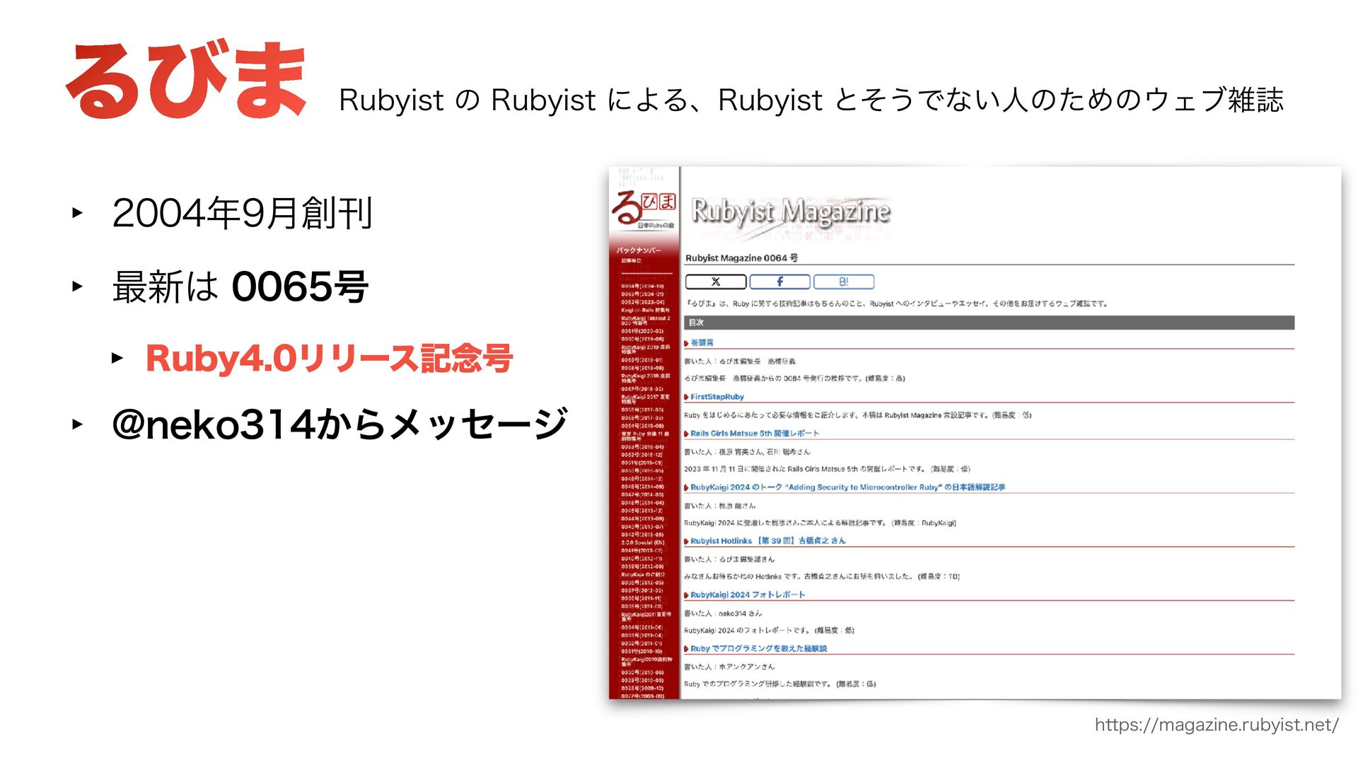 Δͼ· ‣ ݄ץ ‣ ࠷৽߸ ‣ 3VCZϦϦʔεه೦߸ ‣ !OFLP͔Βϝοηʔδ 3VCZJTUͷ3VCZJTUʹΑΔɺ3VCZJTUͱͦ͏Ͱͳ͍ਓͷͨΊͷΣϒࡶࢽ