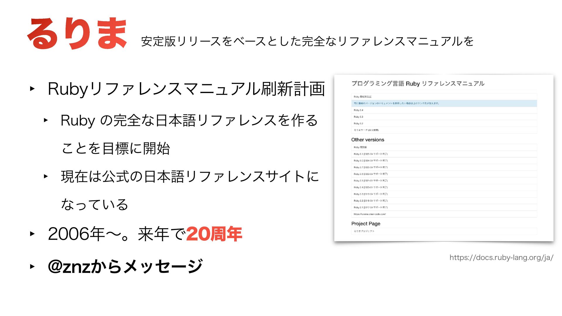 ΔΓ· ‣ 3VCZϦϑΝϨϯεϚχϡΞϧ৽ܭը ‣ 3VCZͷશͳຊޠϦϑΝϨϯεΛ࡞Δ ͜ͱΛඪʹ։࢝ ‣ ݱࡏެࣜͷຊޠϦϑΝϨϯεαΠτʹ ͳ͍ͬͯΔ ‣