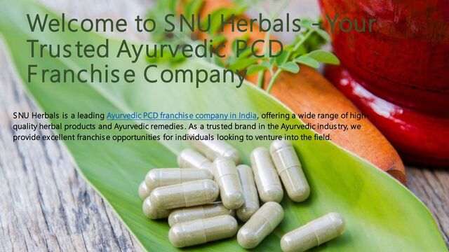 SNU Herbals is a leading Ayurvedic PCD franchise company in India, offering a wide range of high-quality herbal products and Ayurvedic remedies. As a trusted brand in the Ayurvedic industry, we provide excellent franchise opportunities for individuals looking to venture into the field.