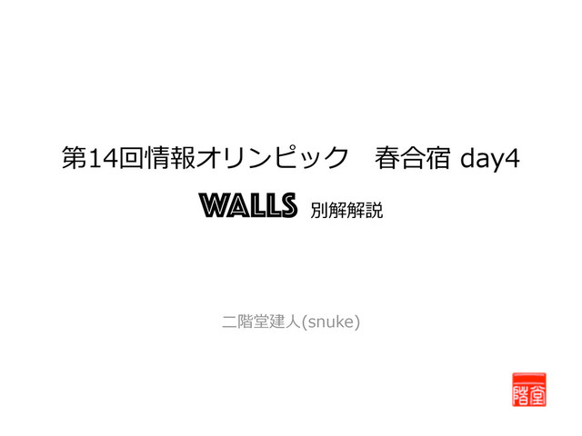 第14回情報オリンピック 春合宿 day4 Walls 別解解説 ⼆二階堂建⼈人(snuke)