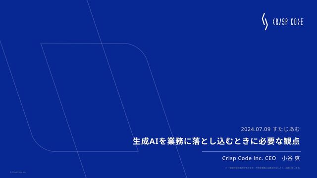 システム・アプリ開発 - ASP / Saas受託開発 - iOS / Androidアプリ受託開発 - システムUI / UXデザイン - クラウドソリューション Web / Maintenance ウェブ制作・運用保守 - コーポレートサイト制作 / リニューアル - ECサイト制作 - SEO / MEO対策 - Crisp Code Supportline Graphic Design グラフィックデザイン - フライヤー / パンフレットデザイン - UI / UXデザイン - ロゴマーク / 名刺デザイン - キャラクター / ラベルデザイン Corporate Social Responsibility 社会貢献活動 / CSR - OSAK A WEB SUMMIT 企画 / 主催 - Crisp Code Academy - Crisp Code B ootcamp - 大学講演 DesignT ech Solution デザインテックソリューション - 技術顧問 - WEB コンサルティング - UI / UXデザインコンサルティング