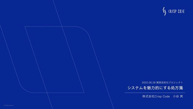 システムを魅⼒的にする処⽅箋 株式会社Crisp Code ⼩⾕ 爽 2022.06.28 関⻄活性化プロジェクト © Crisp Code inc.