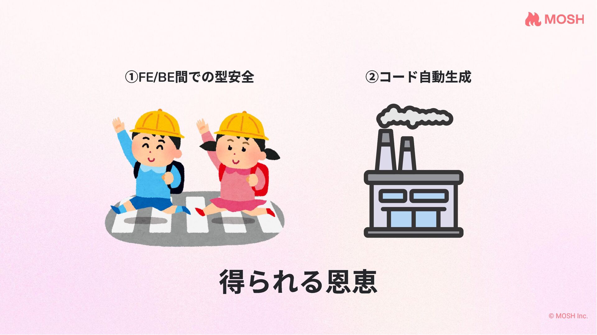 ①FE/BE 間での型安全 ②コード自動生成 得られる恩恵
