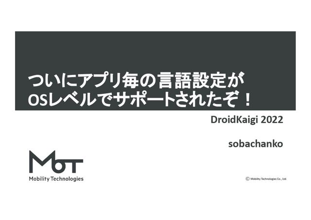 本セッションでは、過去の OS における独自の言語切り替え機能を提供する辛さを解説し、その上で今回提供されたアプリ毎の言語設定が素晴らしいかを褒め称えつつ、多言語化を実施する際の注意点を解説します。