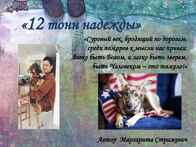 к мысли нас привел: Легко быть Богом, и легко быть зверем, быть Человеком – это тяжело!» Автор Маргарита Стражевич