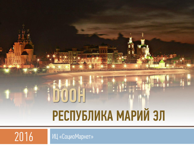 них и в Йошкар-Оле, и в Волжске имеются установленные видеоэкраны, которые по различным причинам не функционируют. Из приведённых данных видно, что рынок цифровой наружной рекламы в Марий Эл находится в зачаточном состоянии. Отсутствие серьёзных инвестиций не позволило сформировать материально-техническую базу для развития отрасли. Число электронных рекламных носителей невелико, большинство из них имеют слабые технические характеристики, некоторые уже морально, да и физически, устарели. Сегодня в регионе нет серьёзных рекламодателей готовых продвигать свой бренд, продукцию или услуги через этот канал. Отношения с федеральными рекламодателями находятся в замкнутом кругу – рекламодатели не размещают рекламу из-за отсутствия адекватных носителей, а инвесторы не запускают такие носители, сомневаясь в возможности окупаемости затрат в разумный срок. Тем не менее, потенциал для развития отрасли есть. Определяется он главным образом текущей экономической ситуацией с одной стороны и тенденциями в развитии цифровой наружки, с другой. Стоит крупным федеральным рекламодателям включить в свои медиапланы размещение в регионах цифровой рекламы на носителях определенных стандартов, и местные предприниматели предпримут необходимые меры для удовлетворения возникшего спроса. 2016 ИЦ СоциоМаркет DOOH Марий Эл www.sociomar.com 24