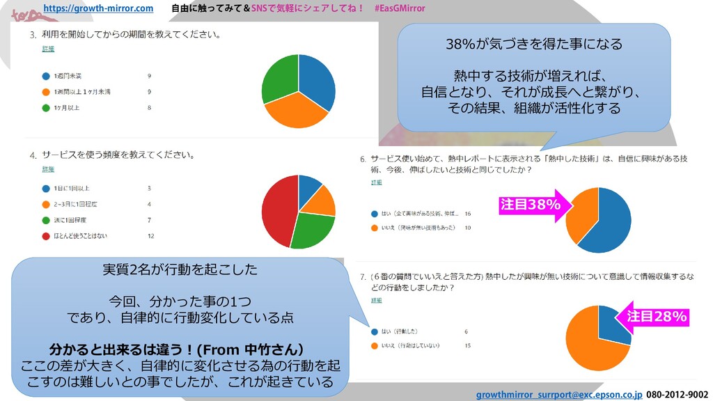 080-2012-9002 38%が気づきを得た事になる 熱中する技術が増えれば、 自信となり、それが成長へと繋がり、 その結果、組織が活性化する 注目38%