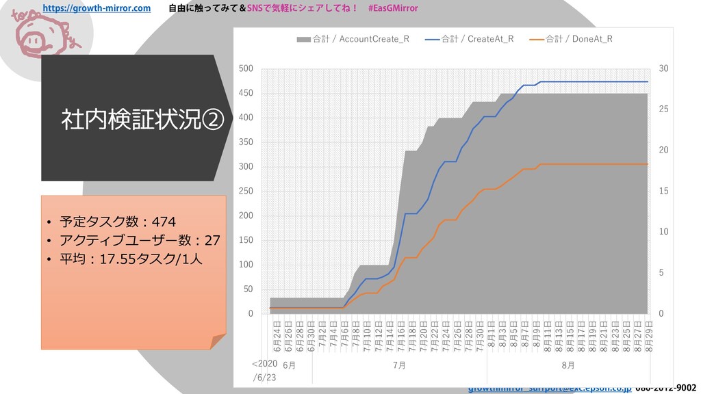 080-2012-9002 社内検証状況② • 予定タスク数:474 • アクティブユーザー数:27