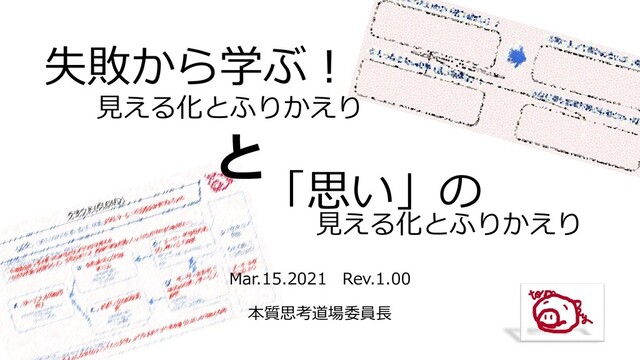 失敗から学ぶ! 見える化とふりかえり Mar.15.2021 Rev.1.00 本質思考道場委員長 「思い」の 見える化とふりかえり と