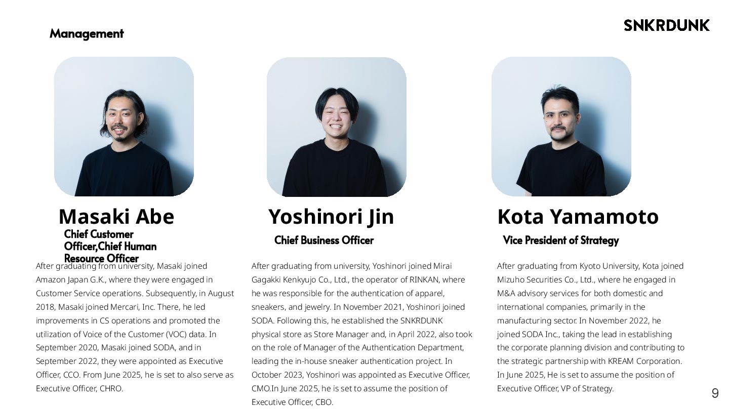 Chief Operating Officer While attending university, Satoshi launched ventures in Web, gaming, and VR. Subsequently, he joined the early stages of Soramitsu Co., Ltd., where they served as the Head of Product for the Japan business. In May 2018, Satoshi joined the Mercari Group as a Product Manager, gaining experience in launching multiple projects and businesses. Following this, they held the position of Director of Product, overseeing several teams including Product Management, Machine Learning, and QA. In December 2024, Satoshi joined SODA as Executive Officer, CPO. In June 2025, he is set to assume the position of Executive Officer, COO.