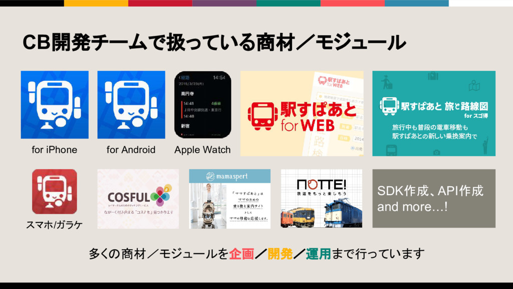 CB開発チームで扱っている商材/モジュール for iPhone for Android Apple Watch SDK作成、API作成 and more…!
