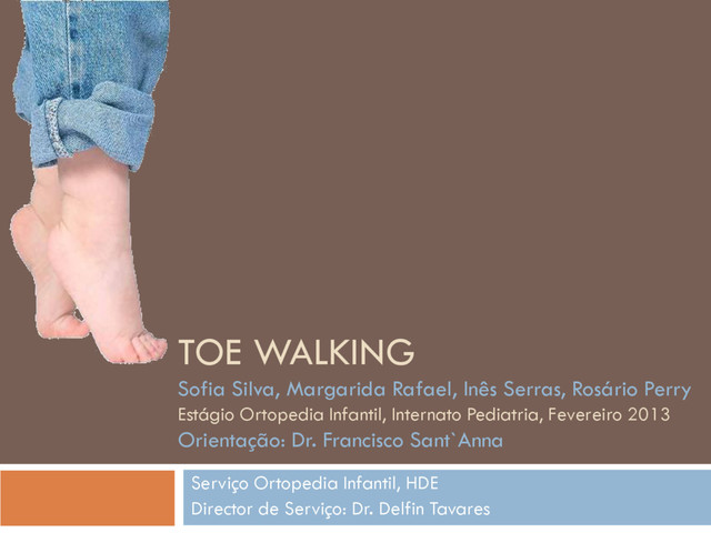 Edition 2006 Lippincott Williams & Wilkins Engelbert et al., Idiopathic toe-walking in children, adolescents and young adults: a matter of local or generalised stiffness?, BMC Musculoskeletal Disorders 2011, 12:61 S. Zimbler, Idiopathic Toe Walking: Current Evaluation and Management, Children’s Hospital Pähr Engström, Idiopathic Toe-Walking in Children; Prevalence, Neuropsychiatric Symptoms and the Effect of Botulinum Toxin A Treatment, Department of women's and children's, Karolinska Institutet, Sweden