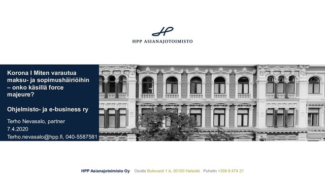 vahingosta, joka johtuu sopijapuolen vaikutusmahdollisuuksien ulkopuolella olevasta esteestä, jota sopijapuolen ei kohtuudella voida edellyttää ottaneen huomioon sopimuksentekohetkellä ja jonka seurauksia sopijapuoli ei myöskään kohtuudella olisi voinut välttää tai voittaa. Ylivoimaisena esteenä pidetään, ellei toisin näytetä, esimerkiksi sotaa tai kapinaa, maanjäristystä, tulvaa tai muuta niihin verrattavaa luonnonmullistusta, yleisen liikenteen, yleisen tietoliikenteen tai yleisen sähkönjakelun keskeytystä, tuonti- tai vientikieltoa, lakkoa, työsulkua, boikottia tai muuta niihin verrattavaa työtaistelutoimenpidettä. Lakko, työsulku, boikotti tai muu niihin verrattava työtaistelutoimenpide katsotaan, ellei toisin näytetä, ylivoimaiseksi esteeksi myös silloin, kun sopijapuoli on itse sen kohteena tai siihen osallisena.