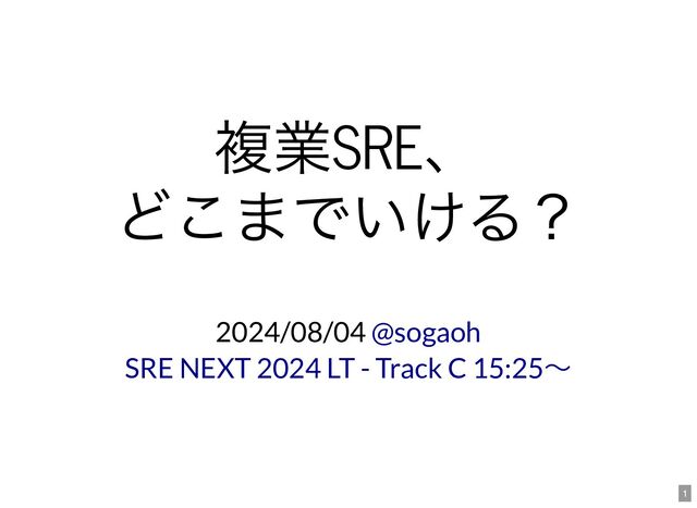 縁も運もあってか、今自分はなんと4社で明示的にSREロールを担う/もしくは委託されています。 暗黙的もしくは自称を加えるとあと数社これに乗ってきます。 ただでさえ、そう簡単ではない複業でのSRE稼業を、どのように掴み・回し・前に進めているのか。 振り返りつつ、プラスの面・マイナスの面を整理して、現状をご紹介します。 2024年7月時点の、課題に感じていることと直近数年程の展望も、お話ししたいと思います。
