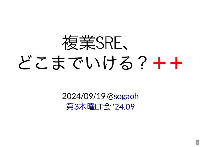 複業SRE、 どこまでいける?++ 2024/09/19 @sogaoh 第3木曜LT会 '24.09 1