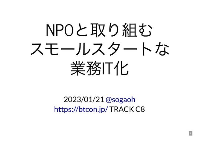 このトークでは、このプロジェクトを通じてNPOとの接点が生まれ、社会の課題に対して共同して取り組む過程で自分が得たこと・感じたことをお話しします。そこから、自身とチームが見出して適用できた、スモールながらある面では大きな、業務IT化の一歩の現在と、これからの世の中を少しでも改善するのに向けてITをどのように広げていけそうか、考えている可能性をご紹介できればと思います。