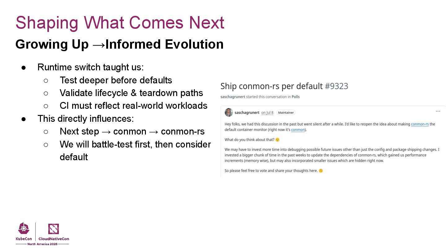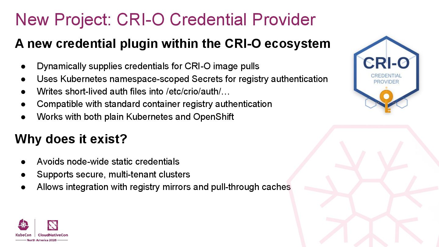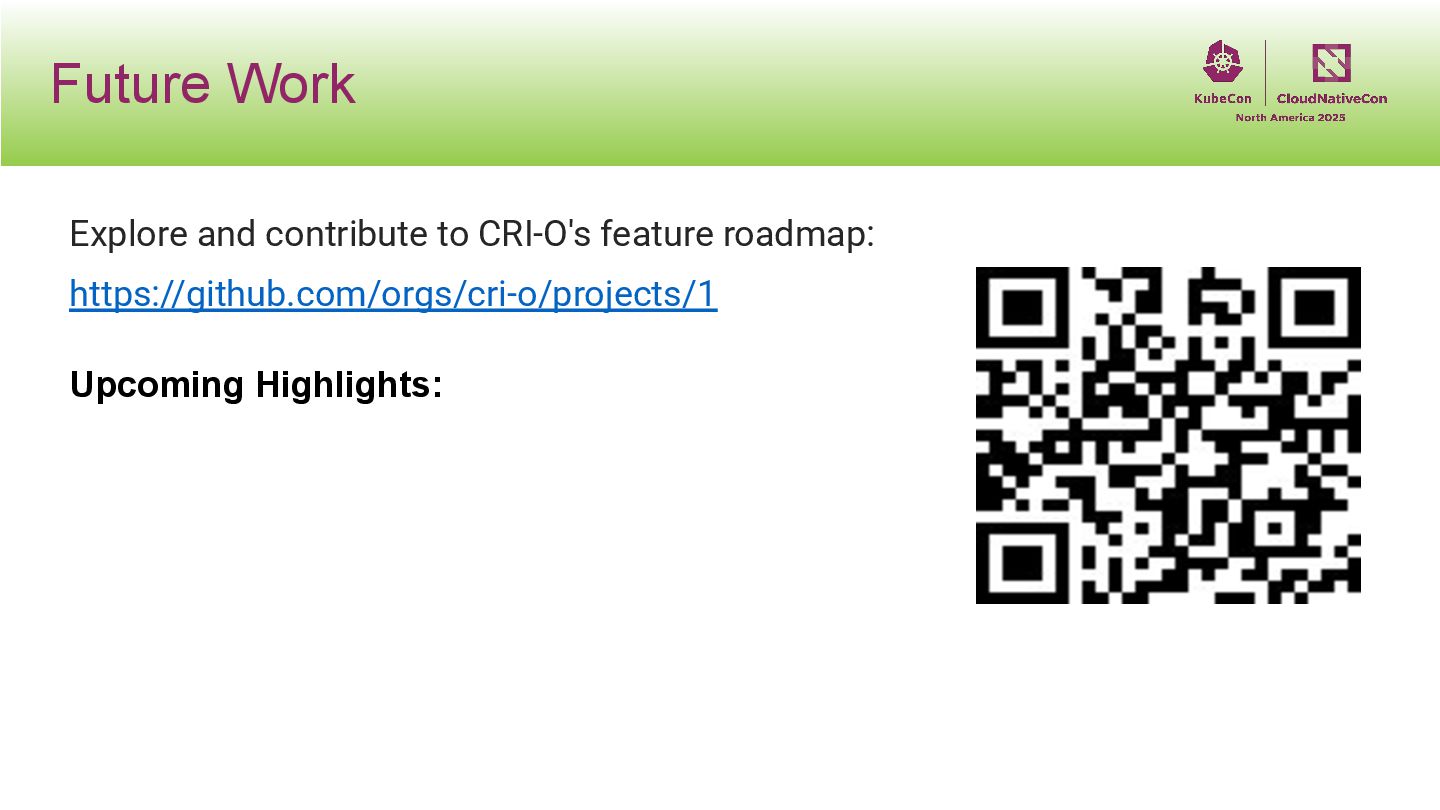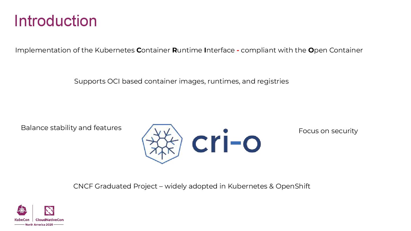 As the container ecosystem continues to evolve, CRI-O is innovating to meet new challenges. In this session, we will explore the latest advancements in CRI-O, including support for OCI Artifacts beyond container images, such as AI and ML model deployment, as well as new security features like advanced seccomp profile controls and customizable stop signal handling. We'll also highlight performance and infrastructure updates. Through demos, we'll examine these capabilities and preview future additions. Attendees will gain insights to improve the security, adaptability, and operational efficiency of their container environments. This talk is ideal for SysAdmins, SREs, and Developers.